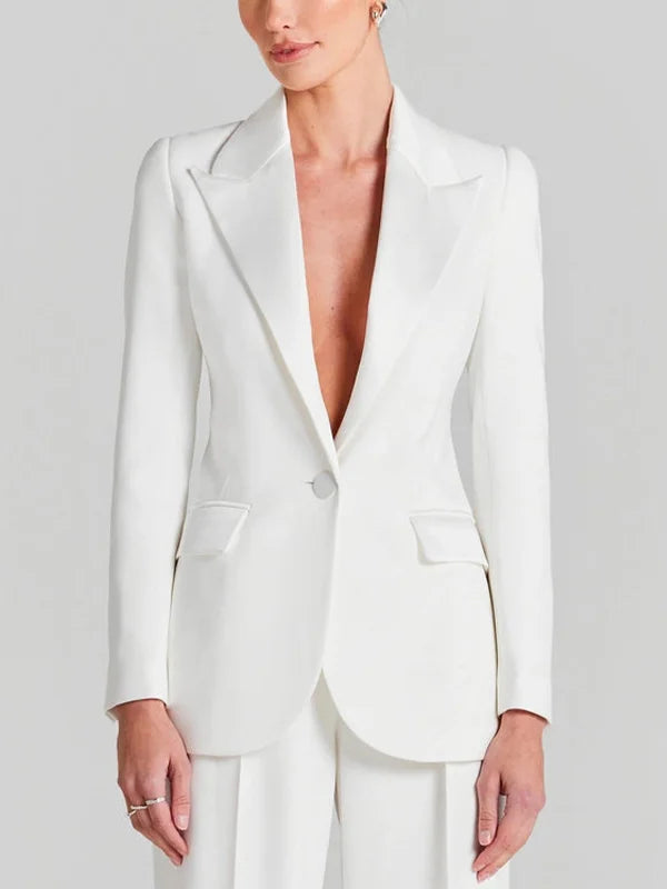 Sofia | Blazer Bianco a Un Bottone con Collo Pieghettato