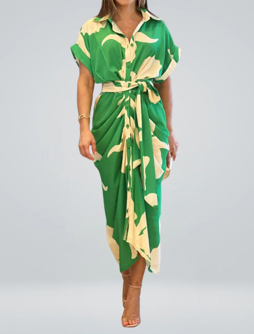 L’abito Aveline unisce eleganza e semplicità in uno stile casual raffinato, ideale per affrontare l’estate con leggerezza e femminilità. Il taglio fluido e la cintura in vita valorizzano la figura, mentre la stampa vivace dona freschezza a ogni look.