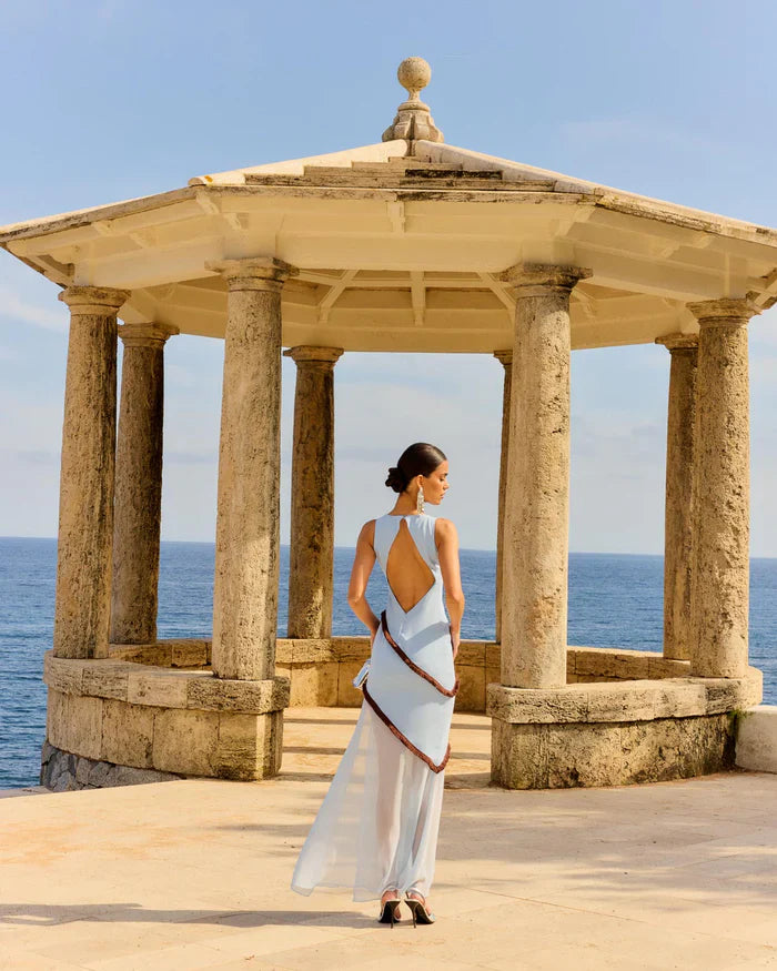 Il nostro abito si distingue per la sua leggera georgette, dettagli di frange e una silhouette aderente che valorizza la figura con sofisticatezza. Ideale per matrimoni, feste o cene eleganti dove vuoi sentirti speciale e sicura di te stessa.
