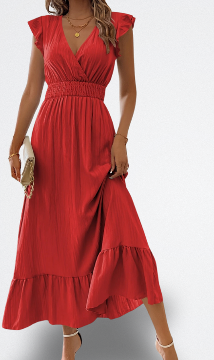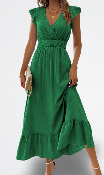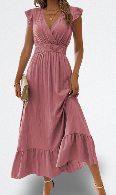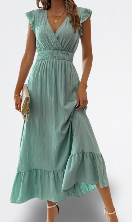 Un sussurro morbido di eleganza: questo vestito fluisce come un segreto pronto a essere rivelato.
