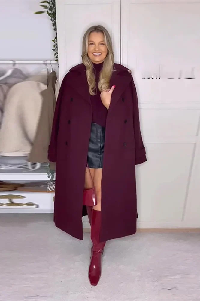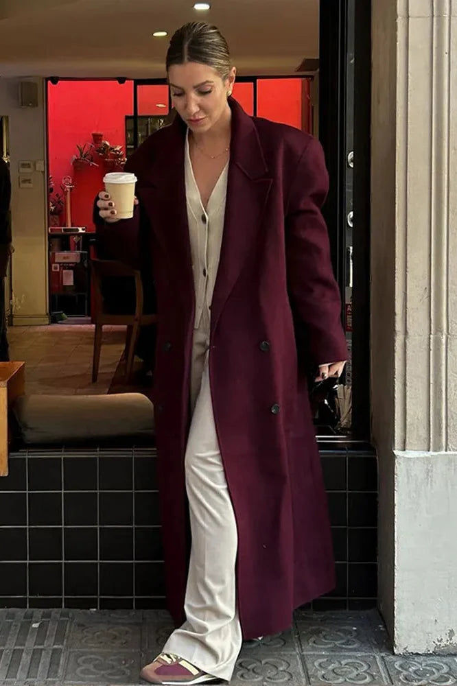Questa giacca lunga con doppi bottoni ha un classico colletto a revers e un design a tinta unita, che offre un aspetto raffinato e senza tempo. Realizzata per calore e comfort, è ideale per rimanere accoglienti durante i mesi più freddi, aggiungendo al contempo raffinatezza a ogni outfit.