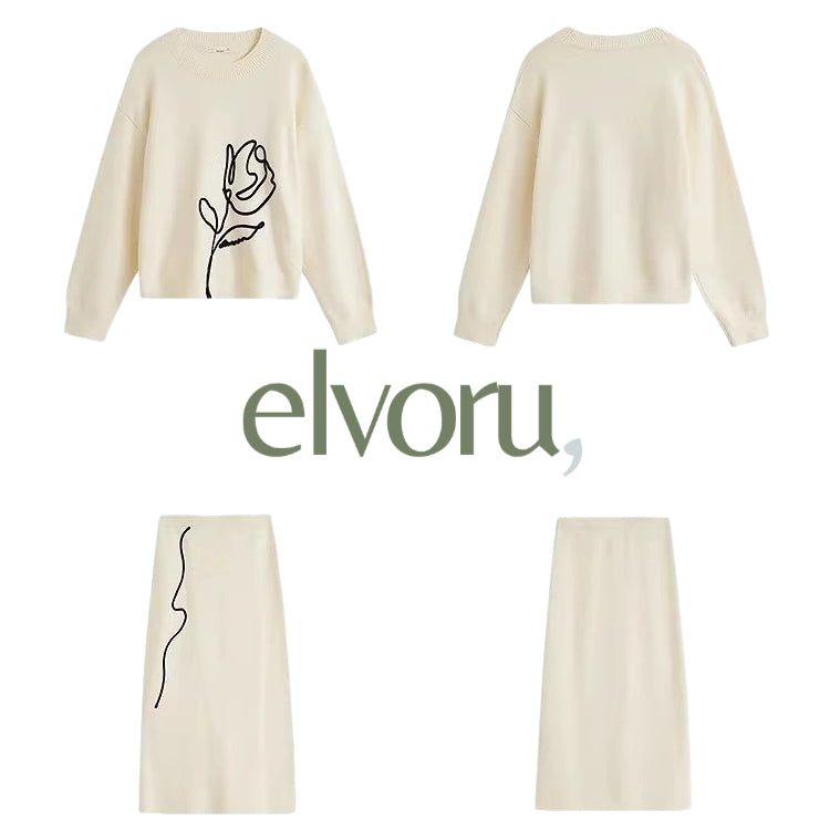 Ecco il set Serafina-Elise Rose: un duo perfetto composto da un maglione caldo con una delicata stampa a rose e un abito corto abbinato sotto. Questo set coordinato offre stile ed eleganza senza sforzo, ideale per creare un look sofisticato e ordinato con facilità.